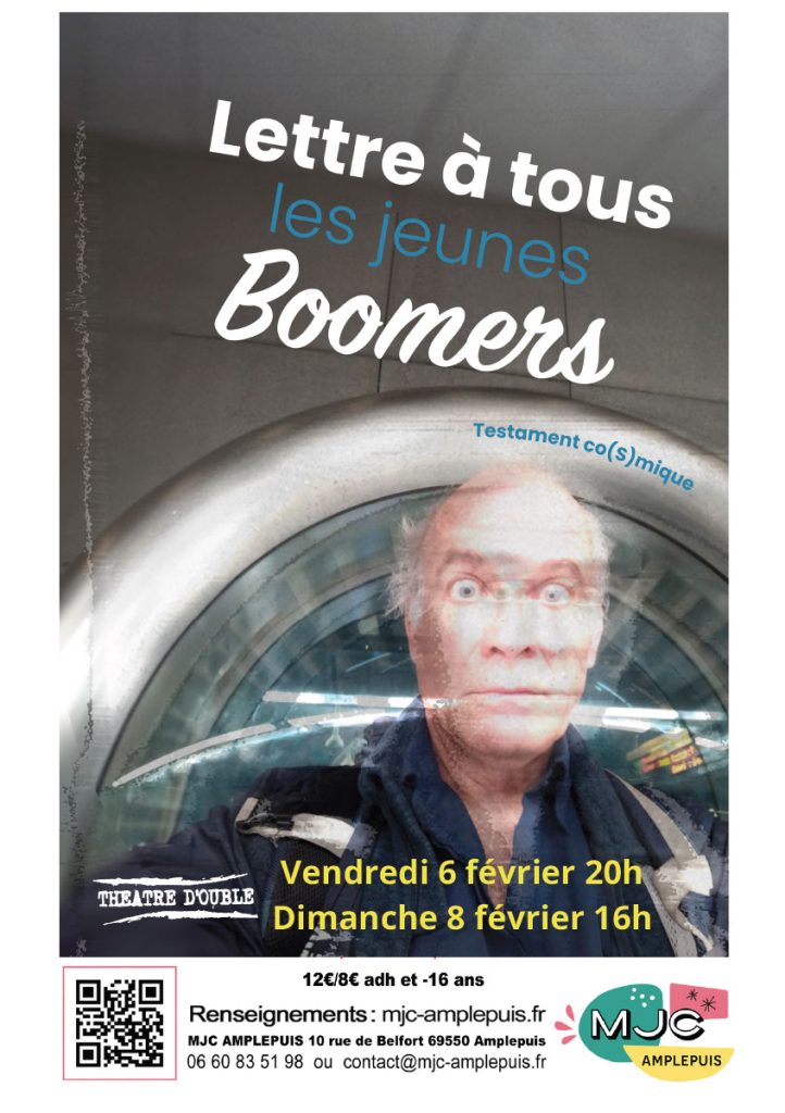 Lettre à tous les jeunes boomers Auteur/autrice de la publication :la_transporterie Publication publiée :20 janvier 2026 Post category:actualité / MJC Amplepuis Commentaires de la publication :0 commentaire Comment venir au spectacle? Covoiturage du 6 Février Covoiturage du 8 Février Vous devriez également aimer Assemblée Générale 2025 5 septembre 2025 Réduction des déchets 9 novembre 2025 livraison AMAP 21 août 2025 Laisser un commentaire Annuler la réponseCommentEnter your name or username to comment Enter your email address to comment Saisir l’URL de votre site (facultatif) Enregistrer mon nom, mon e-mail et mon site dans le navigateur pour mon prochain commentaire.